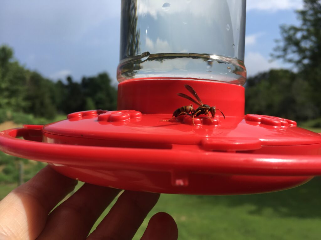 The bees, hornets, wasps, & yellow jackets like the hummingbird nectar, too.