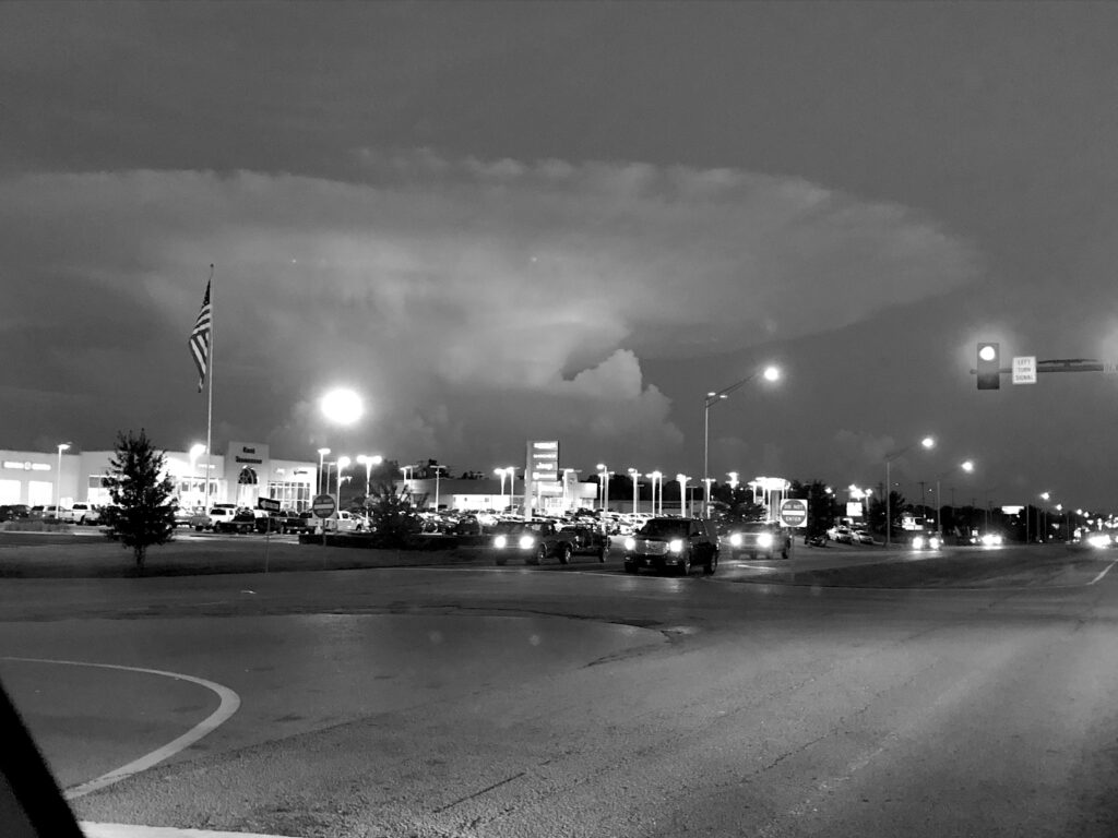 I actually have two photos, one before dark as I drove into town and one at dusk (this one). They are both striking in the similarity to an atomic bomb whether color (original) of B&W. First time I’d ever seen that type of cloud formation.