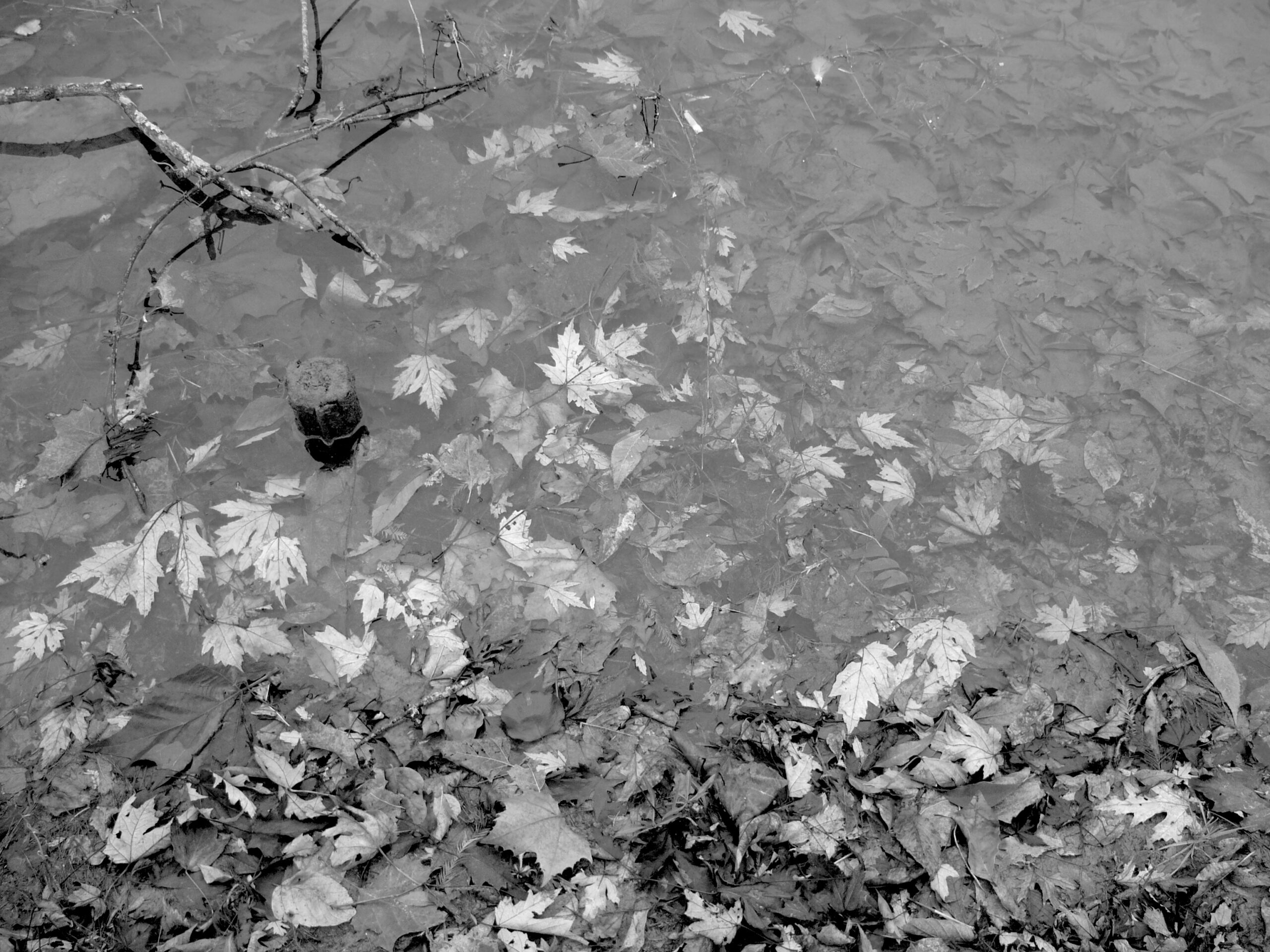 Fall leaves under the water at a campground in Hollister, Missouri